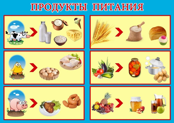Цель: знакомство с названиями различных продуктов, закрепление в словаре обобщающего понятия «продукты питания».
