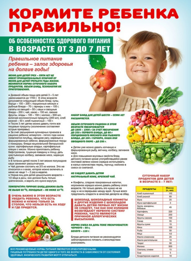 - Соответствие энергетической ценности рациона энергозатратам ребенка.